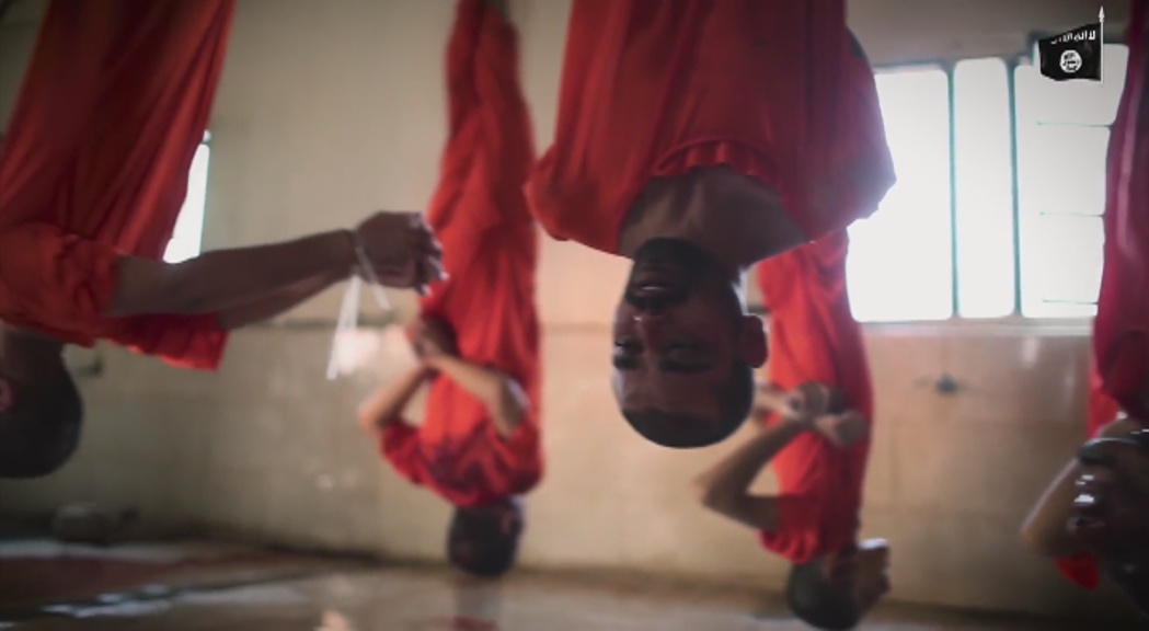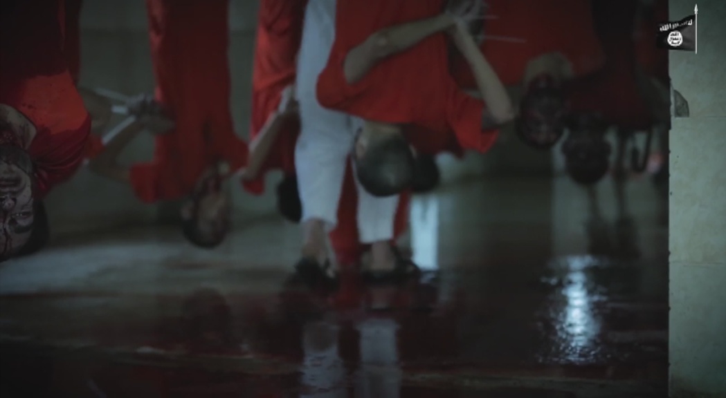 Σοκ στην παγκόσμια κοινή γνώμη προκαλεί ένα βίντεο που έδωσαν στη δημοσιότητα οι τζιχαντιστές του ΙΚ. Στο βίντεο που διαρκεί δώδεκα λεπτά φαίνονται ξεκάθαρα εκτέλεσεις ομήρων μέσα σε σφαγείο και εν συνεχεία τα σώματά τους κρέμονται σε τσιγκέλια!
