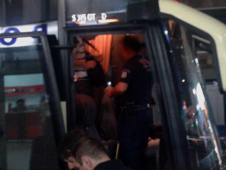 Έτσι, αποφασίστηκε να γίνει έλεγχος σε όλους τους επιβάτες κατά την άφιξη του λεωφορείου στον τερματικό του σταθμό, δηλαδή στην Αλεξανδρούπολη. Κατά τη στάθμευση, ο οδηγός άνοιξε μόνο τη μία πόρτα του οχήματος από την οποία μπήκε ένας αστυνομικός και ενημέρωσε τους επιβάτες για το τι επρόκειτο να συμβεί.