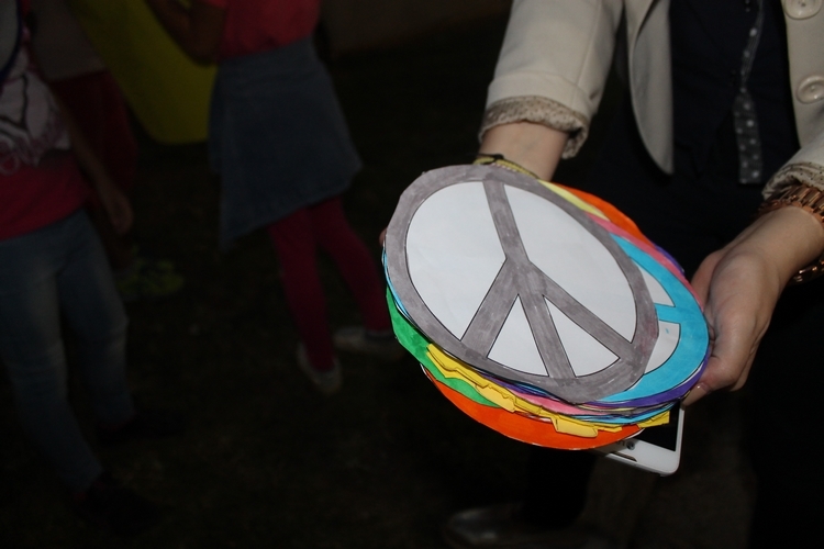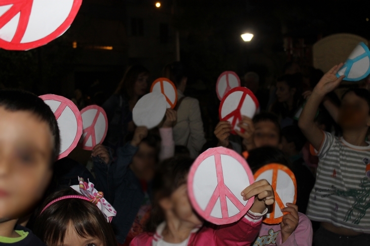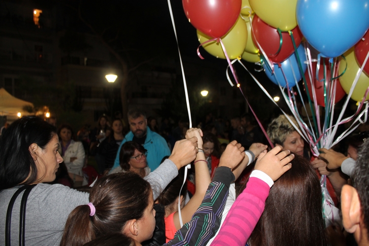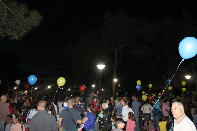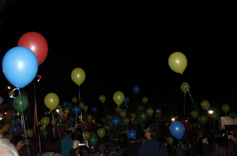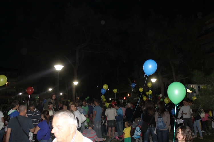 Το χρώμα δόθηκε από τα 1000 μπαλόνια που άφησαν ισάριθμα παιδιά για να στείλουν με αυτόν τον τρόπο μηνύματα Αγάπης και Ειρήνης σε όλον τον κόσμο.