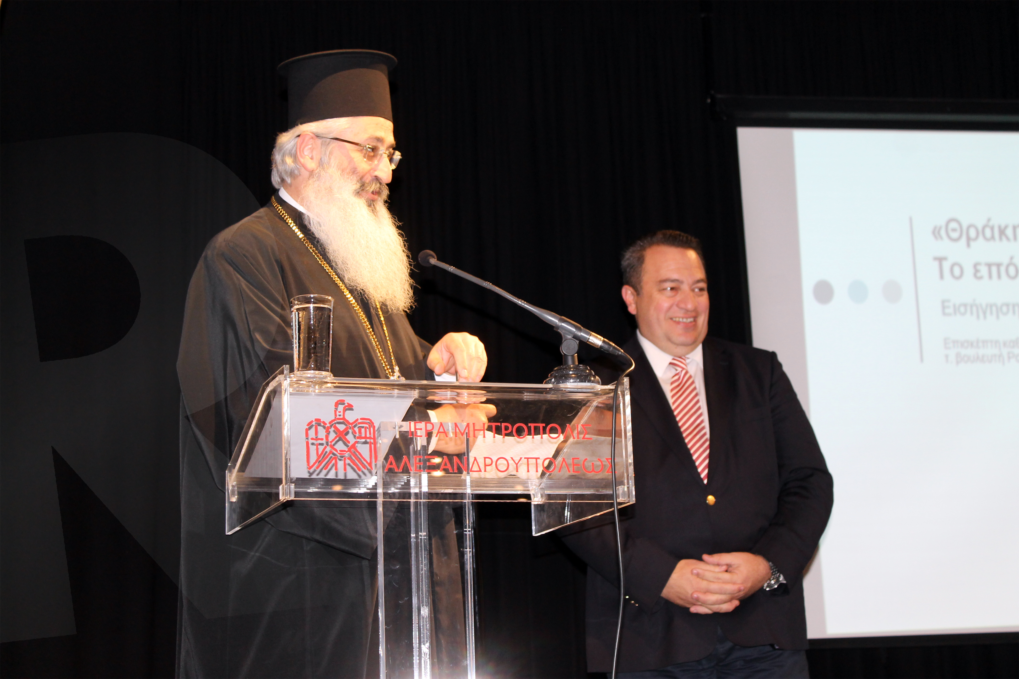 Για τον συγγραφέα, τη συμβολή του στη Θράκη και το βιβλίο μίλησε ο Σεβασμιώτατος Μητροπολίτης Αλεξανδρουπόλεως κ.κ. Άνθιμος, ο Βουλευτής Έβρου της ΝΔ Αναστάσιος Δημοσχάκης, ο Αντιπεριφερειάρχης Έβρου Δημήτρης Πέτροβιτς και ο Δήμαρχος Αλεξανδρούπολης Βαγγέλης Λαμπάκης.