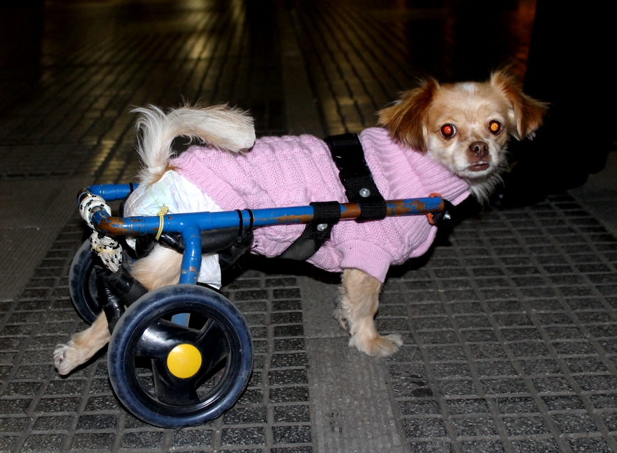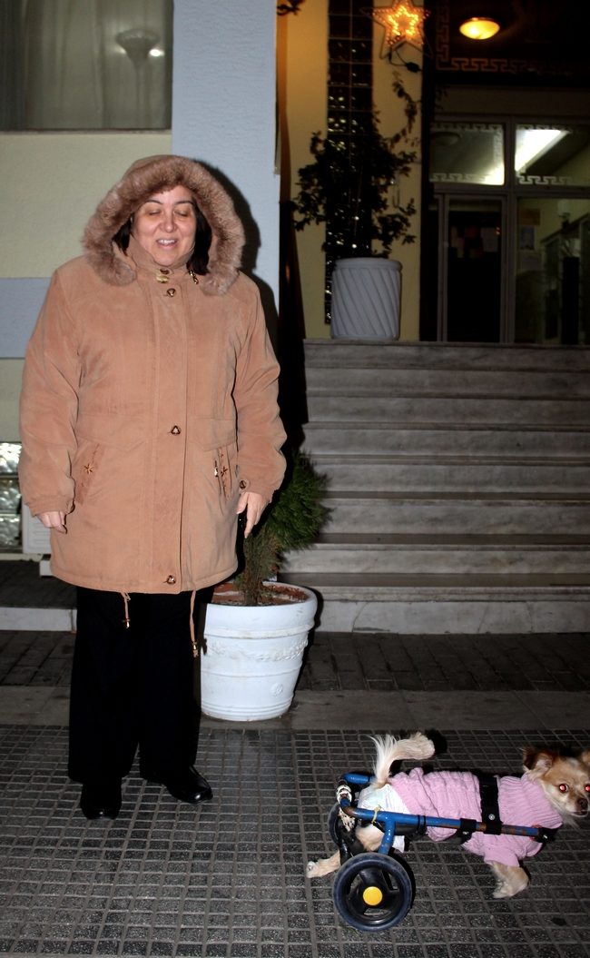 Όπως βλέπετε στη φωτογραφία, η Σάντι είναι ανάπηρη, αλλά αυτό δεν σημαίνει τίποτα για την ιδιοκτήτρια της, η οποία φρόντισε να της εξασφαλίσει την ειδική τροχήλατη κατασκευή ώστε να μπορεί να περπατάει.