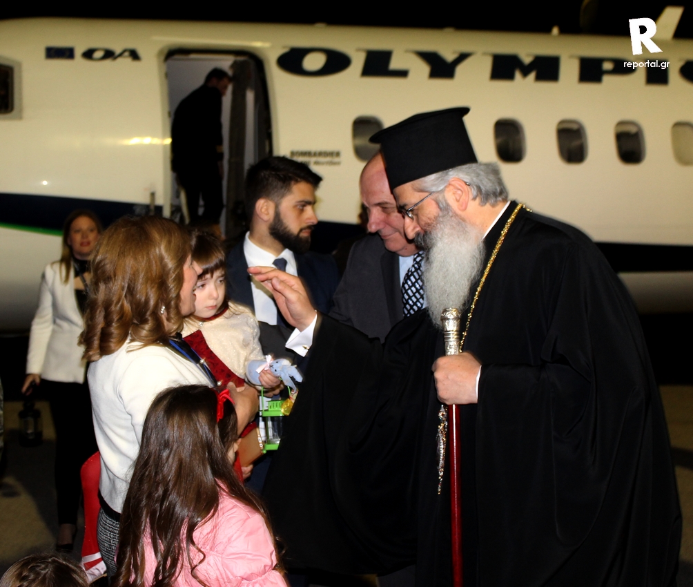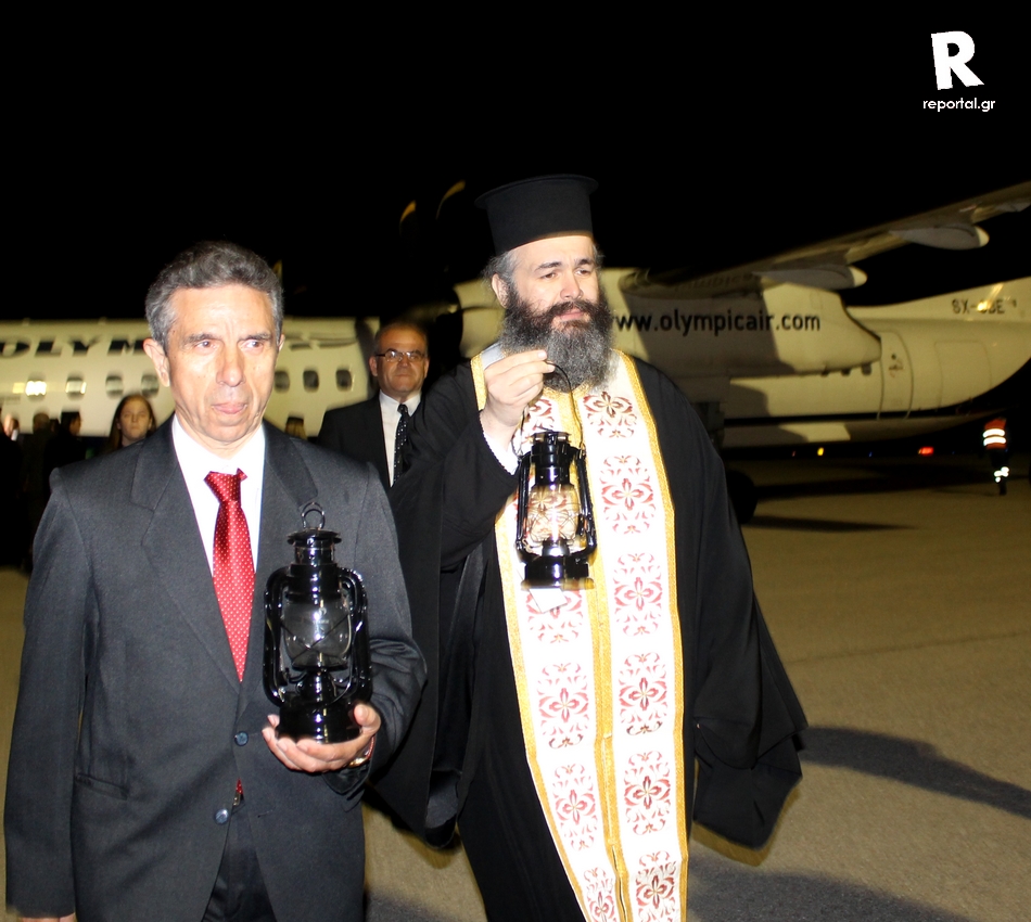 Το Ανέσπερο Φως παρέλαβε από τα χέρια του κυβερνήτη του αεροσκάφους ο Μητροπολίτης Αλεξανδρουπόλεως Άνθιμος, συνοδεία του Υφυπουργού Εξωτερικών Τέρενς Κουίκ, ο οποίος έχει επιλέξει τη Θράκη για τις πασχαλινές του διακοπές.