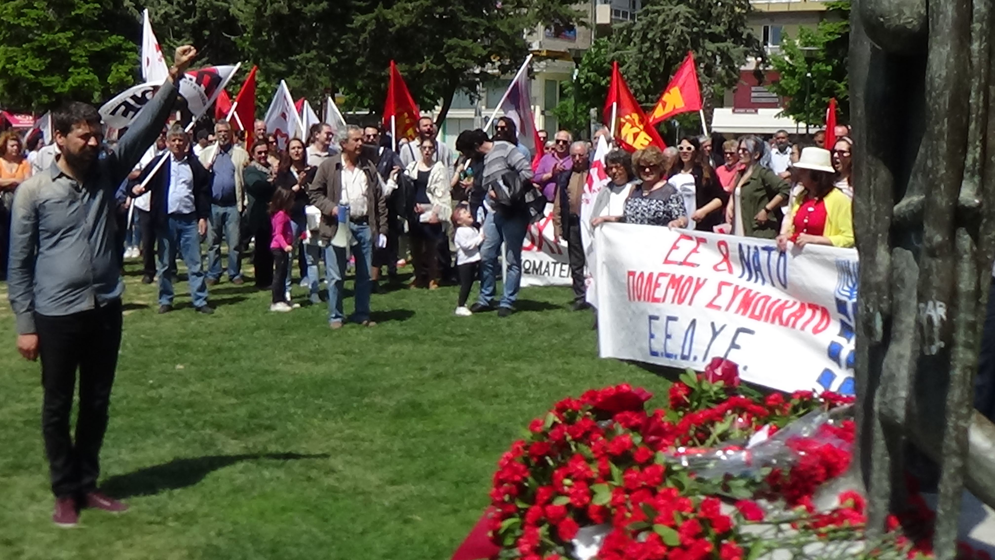 Αγαπητοί σύντροφοι είναι μεγάλη μας τιμή, να παρευρισκόμαστε αυτήν την πρωτομαγιά εδώ, μαζί με τους συντρόφους από το ΠΑΜΕ, μαζι με εσάς.