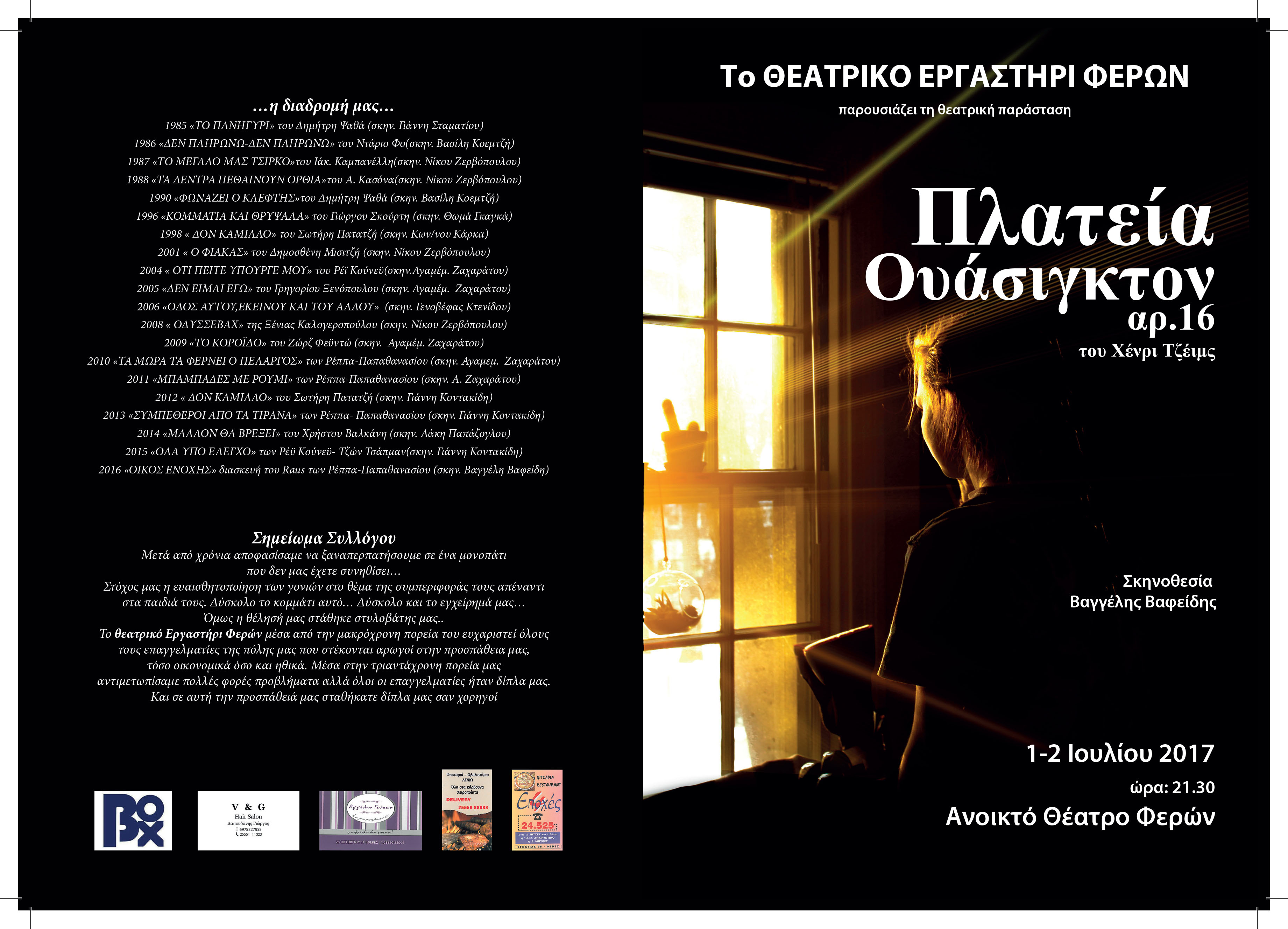 Θεατρικό Εργαστήρι Φερών: Ένα ακόμη ταξίδι αυτής της χρονιάς φθάνει στο τέλος του… Προορισμός του “η πλατεία Ουάσιγκτον,Αρ. 16”