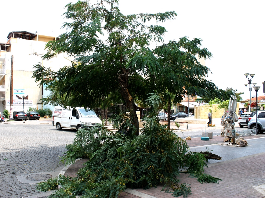 Εκτός από τα συνεργεία του δήμου, στις επιχειρήσεις απομάκρυνσης των σπασμένων κλαδιών ή δέντρων συμμετέχει και η Πυροσβεστική.
