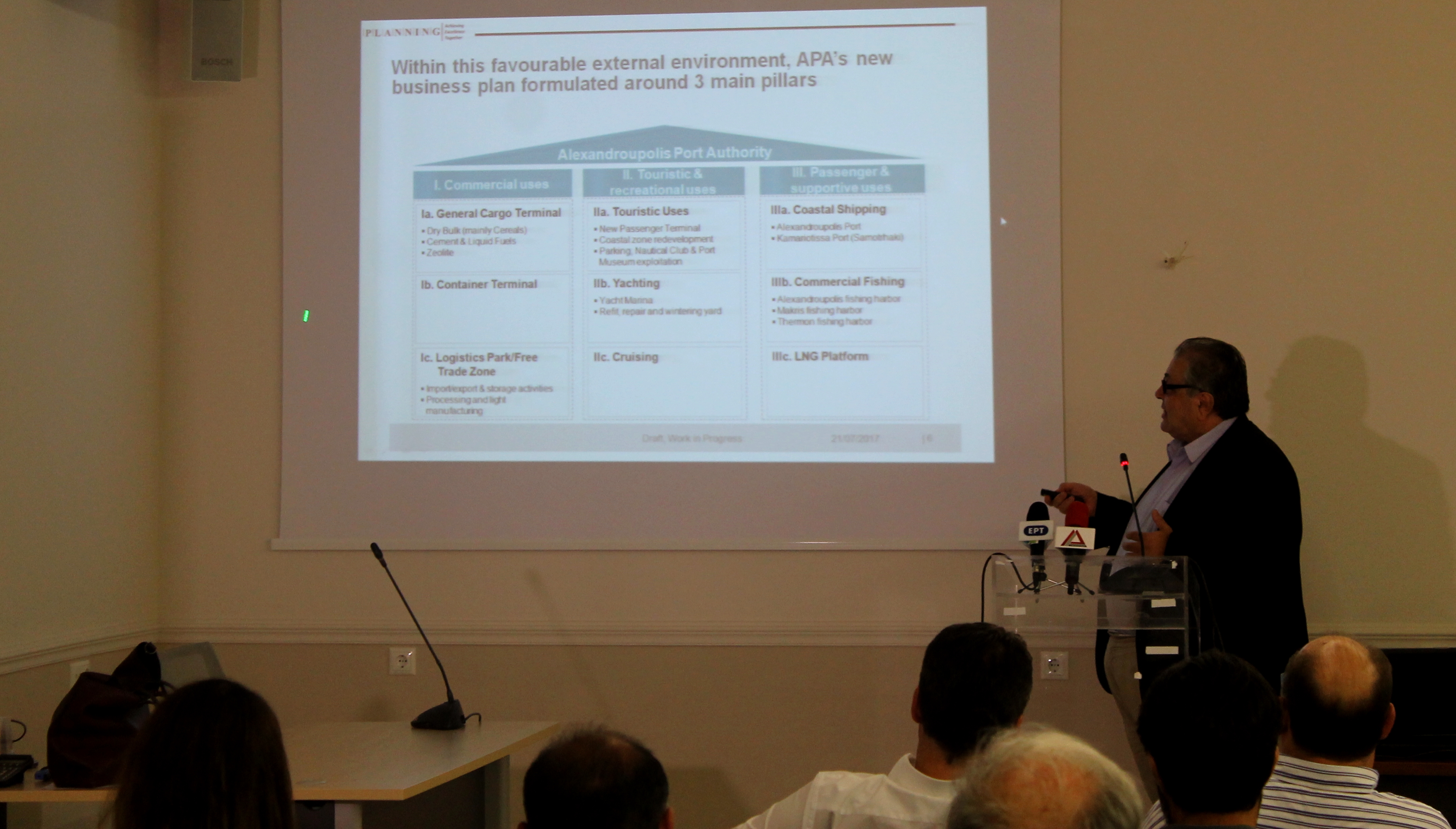 Τέλος, ο γενικός γραμματέας λιμενικής πολιτικής μπορεί να μην παρέστη στην παρουσίαση, απέστειλε όμως επιστολή εκθέτοντας τις θέσεις του. Μέσω αυτής, τόνισε ότι πέρα από τα λιμάνια Πειραιά και Θεσσαλονίκης που πούλησαν μέρος των μετοχών τους, η διαδικασία αυτή δεν θα ακολουθηθεί σε κανένα άλλο λιμάνι της χώρας – ούτε και σε αυτό της Αλεξανδρούπολης. Η αξιοποίηση τους από δω και στο εξής θα γίνεται με άλλους τρόπους και κυρίως με την προσέλκυση επενδυτών.