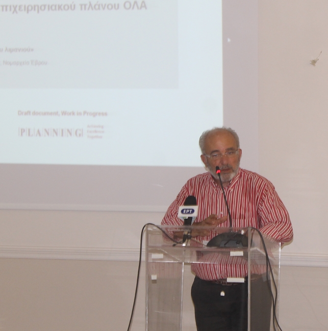 Όσο, για το business plan αυτό καθαυτό κινείται σε τρεις άξονες είπε ο κος Ανδριανόπουλος τους οποίους περιέγραψε ως εξής: πρώτος είναι ο άξονας των μεταφορών και των logistics που είναι και ο ισχυρότερος των τριών καθότι το λιμάνι της Αλεξανδρούπολης έχει σημαντικές προοπτικές στο συγκεκριμένο τομέα και λόγω του προβλήτα του, αλλά και λόγω του ότι πλησίον του υπάρχει διαθέσιμος χώρος για την ανέγερση εγκαταστάσεων φύλαξης και διακίνησης εμπορευματοκιβωτίων.
