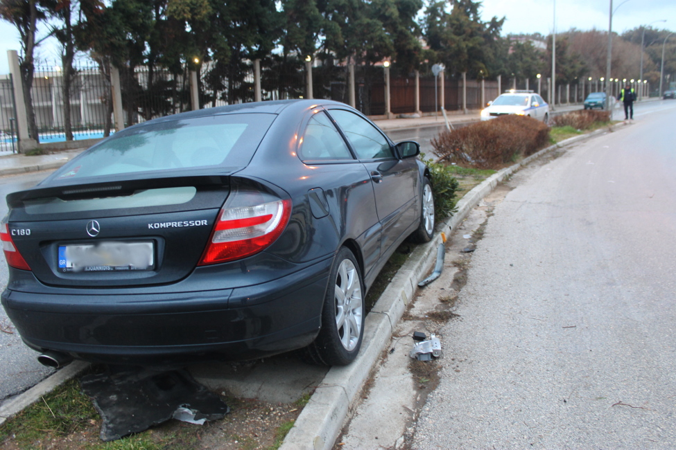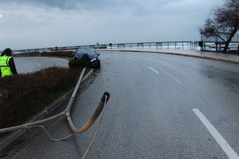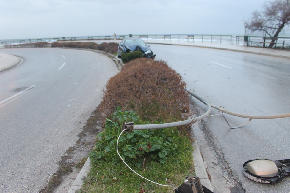 Το αυτοκίνητο σταμάτησε πάνω στη νησίδα που χωρίζει τις λωρίδες κυκλοφορίας της παραλιακής λεωφόρου της Αλεξανδρούπολης.