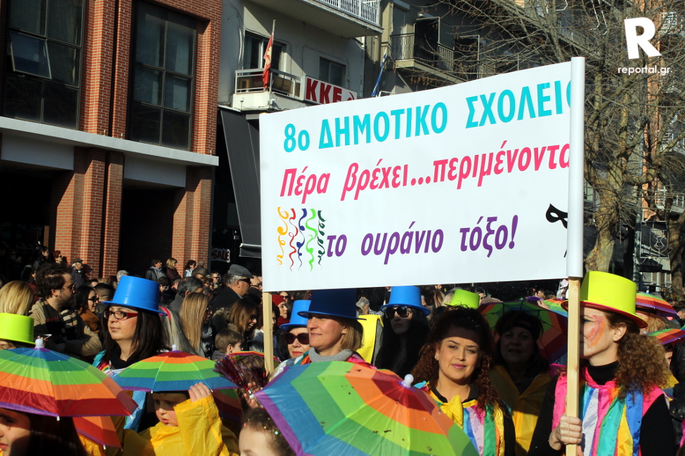 Φέτος συμμετείχαν περίπου 1500 καρναβαλιστές όλων των ηλικιών – κατά κύριο λόγο μαθητές σχολείων σε ομάδες που οργανώθηκαν από τους Συλλόγους Γονέων και Κηδεμόνων με θέματα από την επικαιρότητα και όχι μόνο.