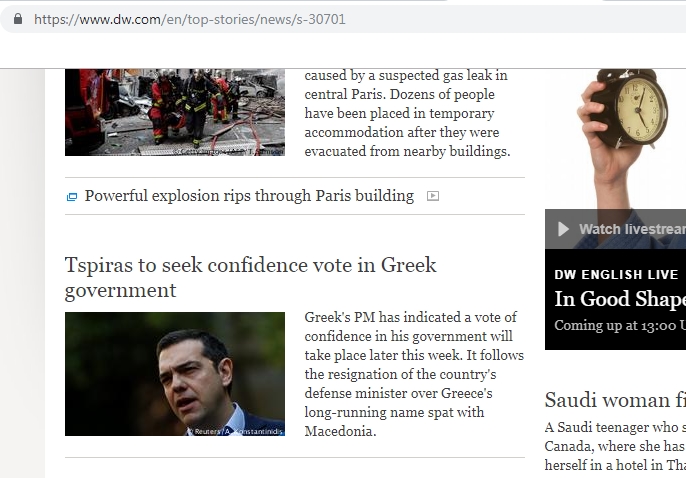 Σε κάθε περίπτωση, η εβδομάδα που ξεκινάει από την Δευτέρα 14/01 είναι μία κρίσιμη εβδομάδα για τα πολιτικά πράγματα της Ελλάδας, γι’ αυτό άλλωστε εκδηλώνεται και το ενδιαφέρον των ξένων ΜΜΕ. Στις 20 Ιανουαρίου προγραμματίζονται συλλαλητήρια σε Αθήνα και Θεσσαλονίκη, από τους φορείς που αντιδρούν στη Συμφωνία των Πρεσπών.